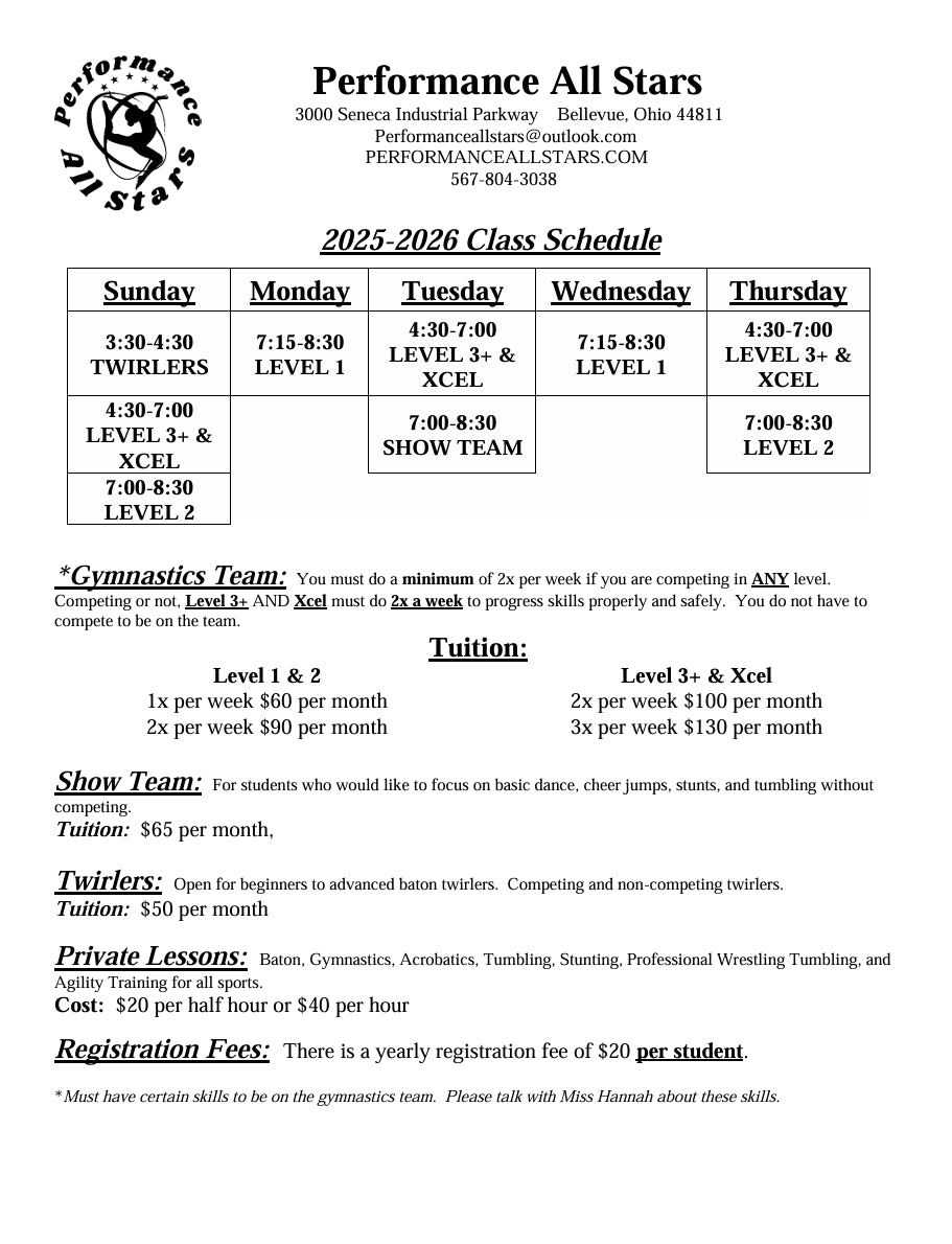Transform your child into a professional performer with our dynamic gymnastics team, baton twirling team, or learn basic cheer, dance, and tumbling with our Show Team! We strive to make your child the best they can be with proper technique and confidence in mind!